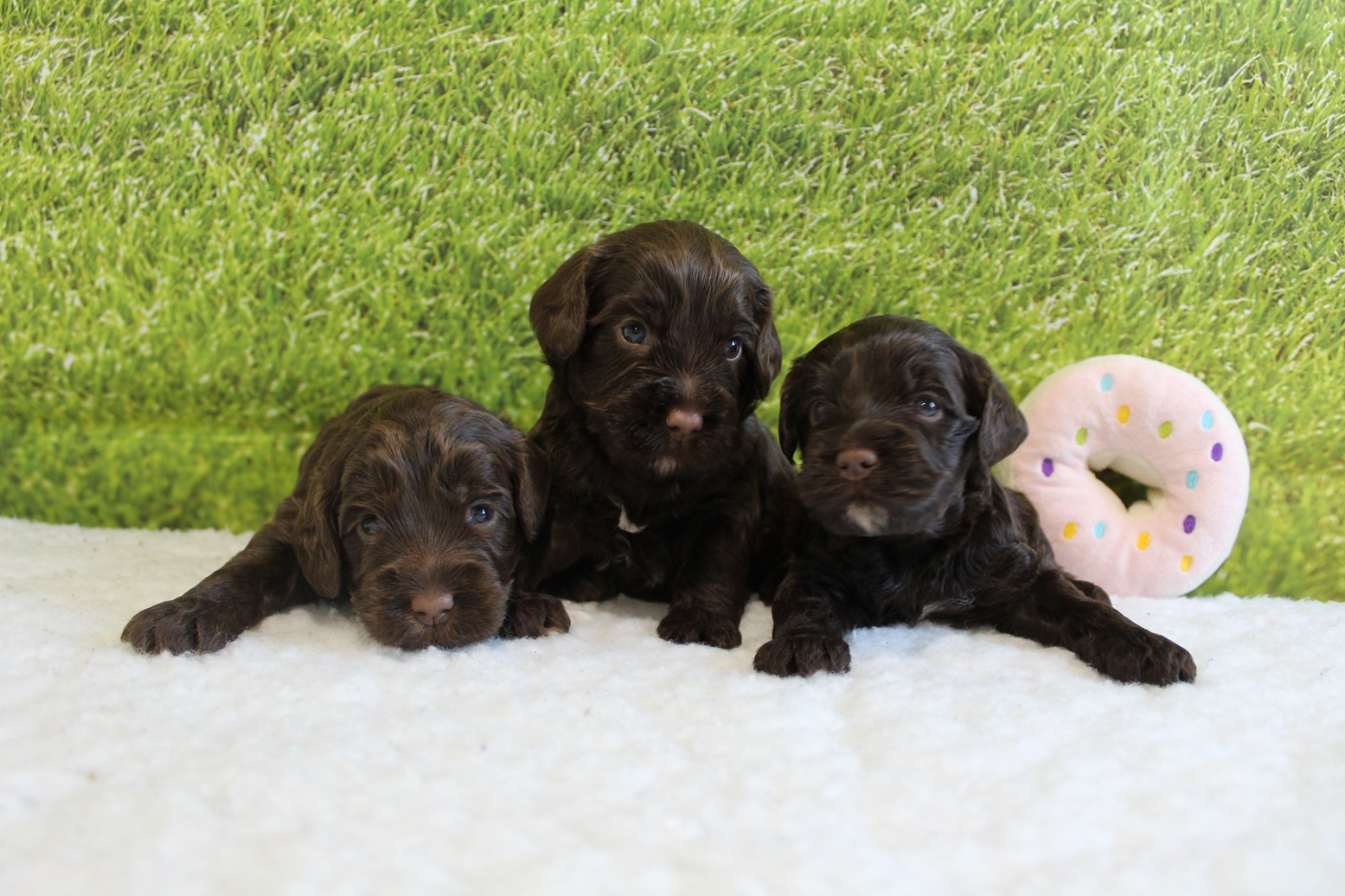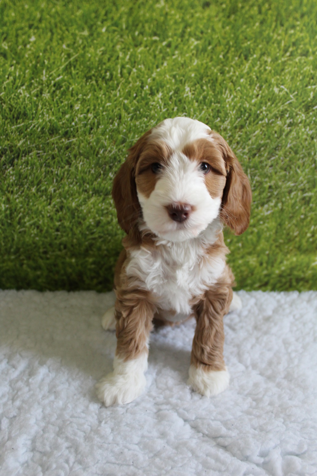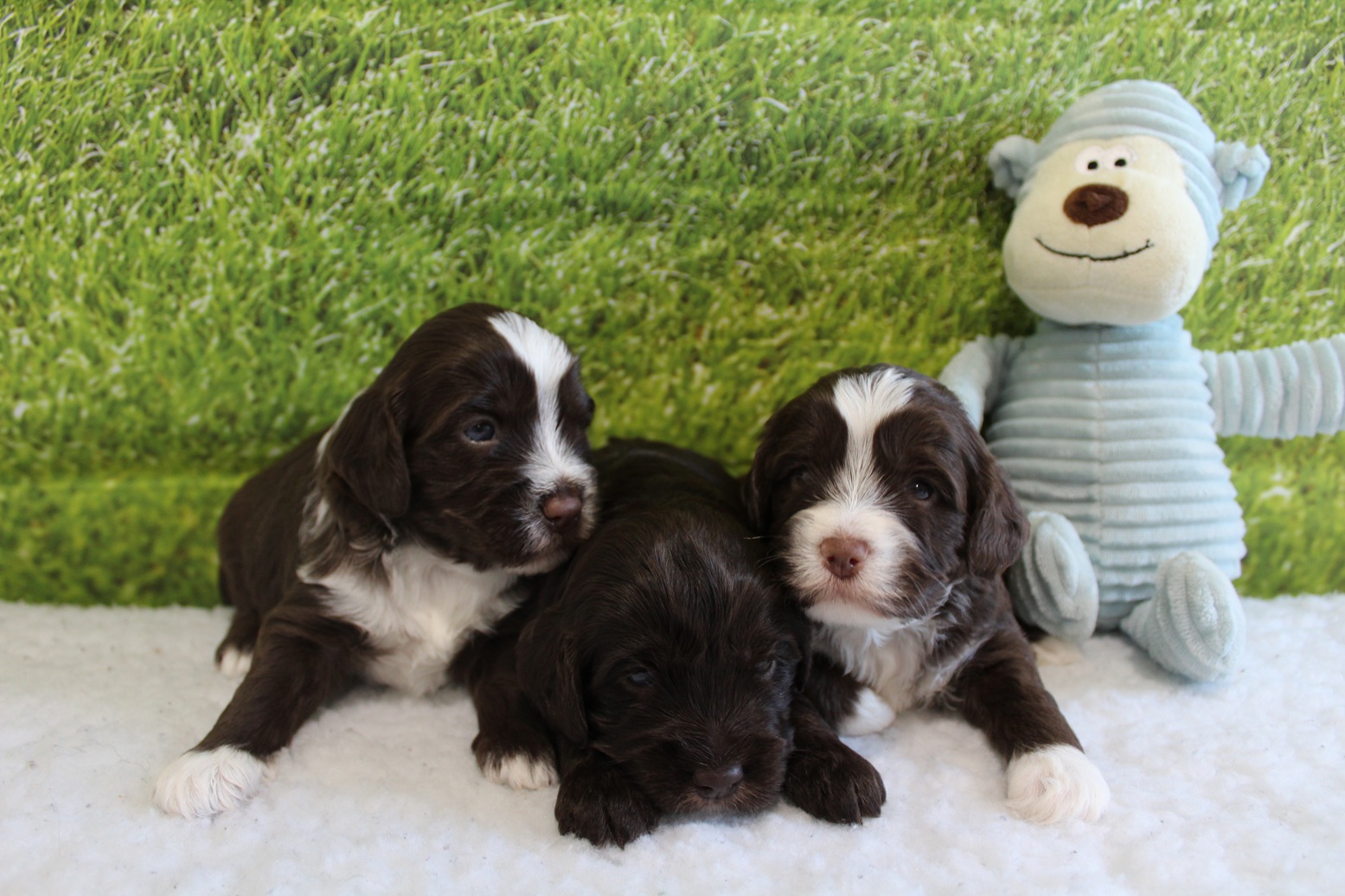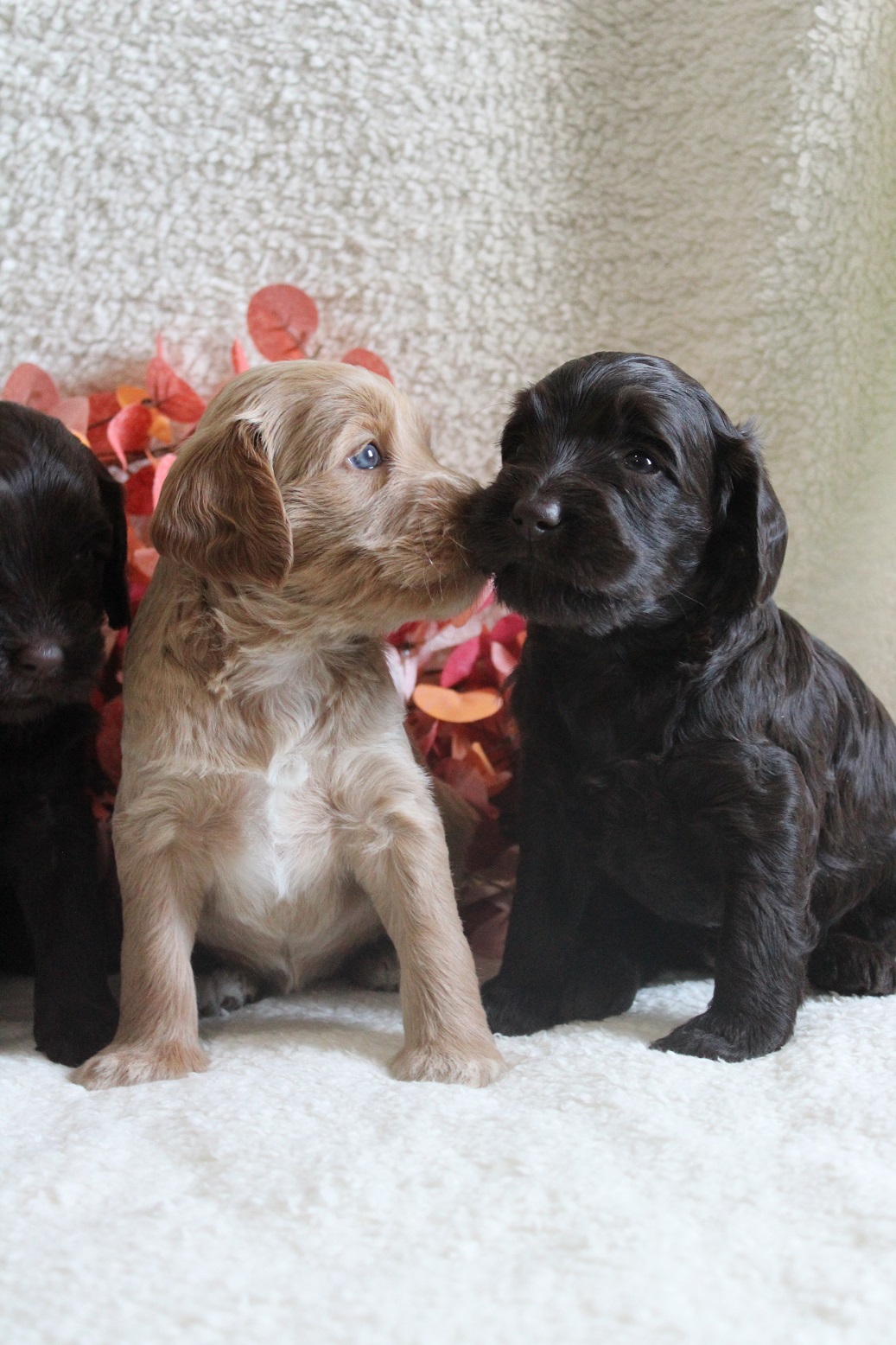 We are excited to be expecting a lovely litter of miniature puppies from Harper and Chip! This will be Harper's second litter but her first with Chip. We are expecting her to have a mix of chocolate and caramel puppies and we will most likely have some white markings too. One fully grown we expect the puppies to reach around 15-17" at the shoulder and around 10-12kg. Last year Harper had a gorgeous litter with Chip's best friend, Chester, so you can see some pictures of those puppies above. Please get in touch if you'd like to join this litter.