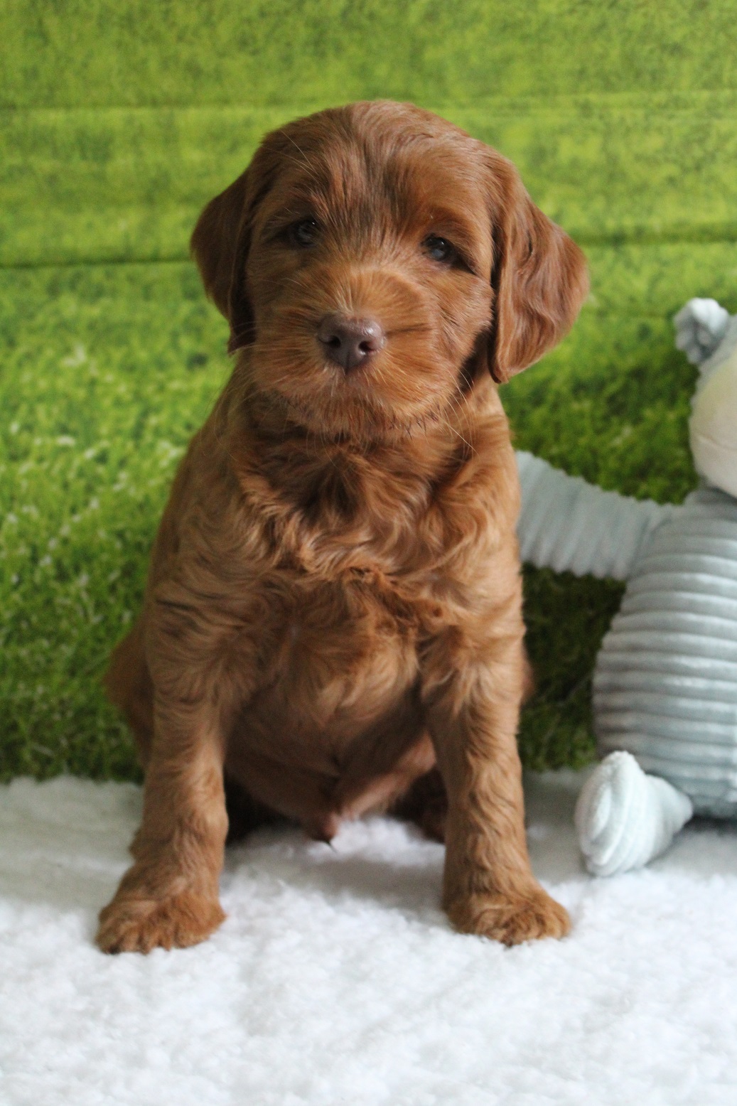 Gentle girl Maya and our lovable, playful Bertie are parents! Maya has delivered a gorgeous litter of medium red/gold/caramel puppies. Once fully grown we expect the puppies to reach around 19/20" at the shoulder. We now just have the two gorgeous boys below available so please get in touch.